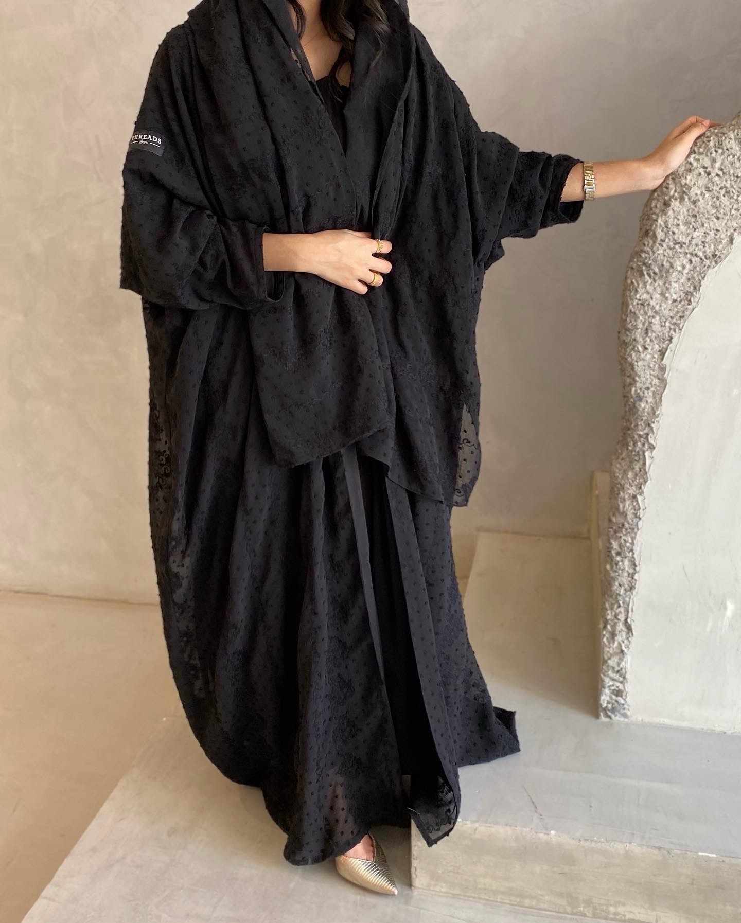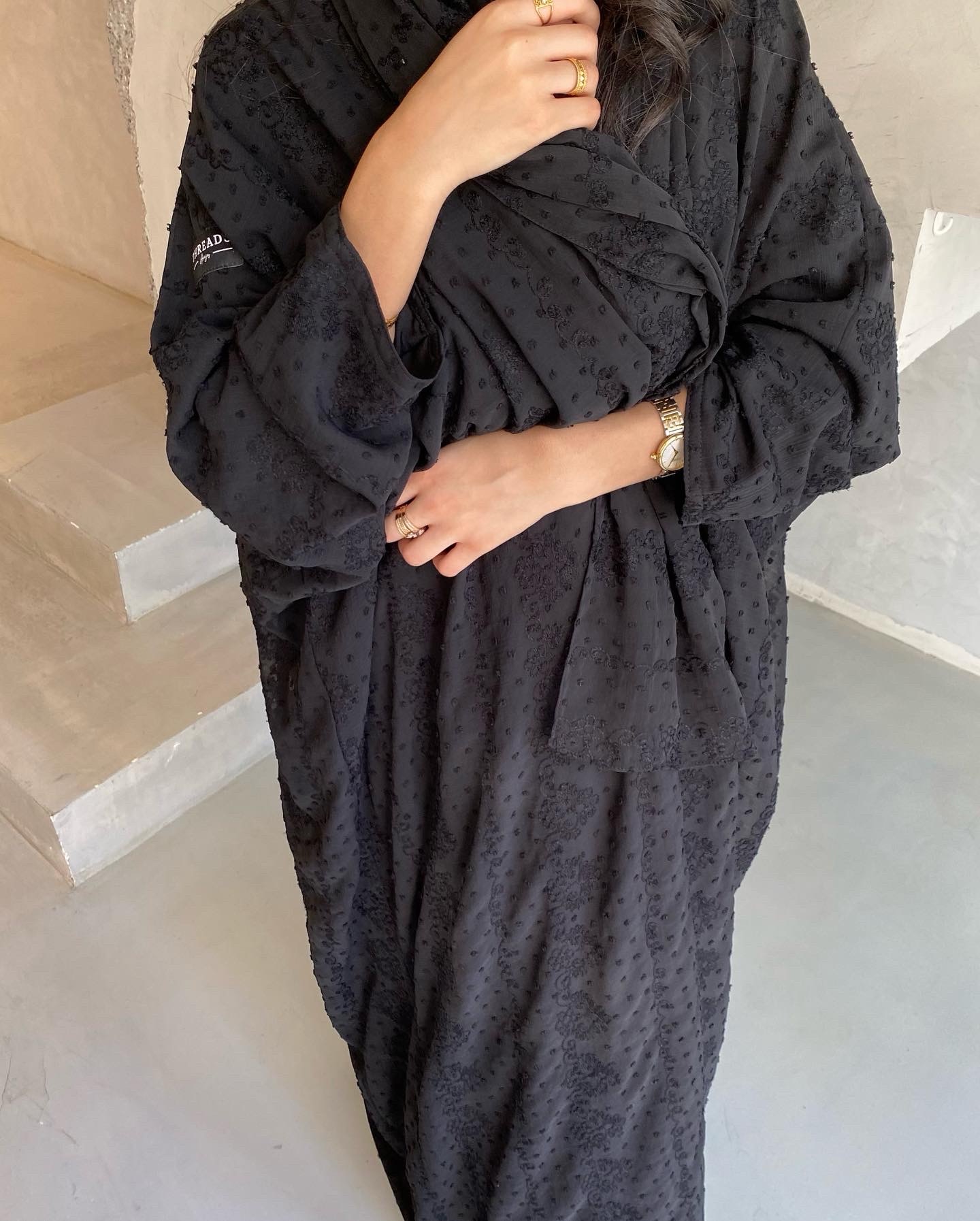 عباية مخمل لون اسود – مع شال بنفس قماش العباية