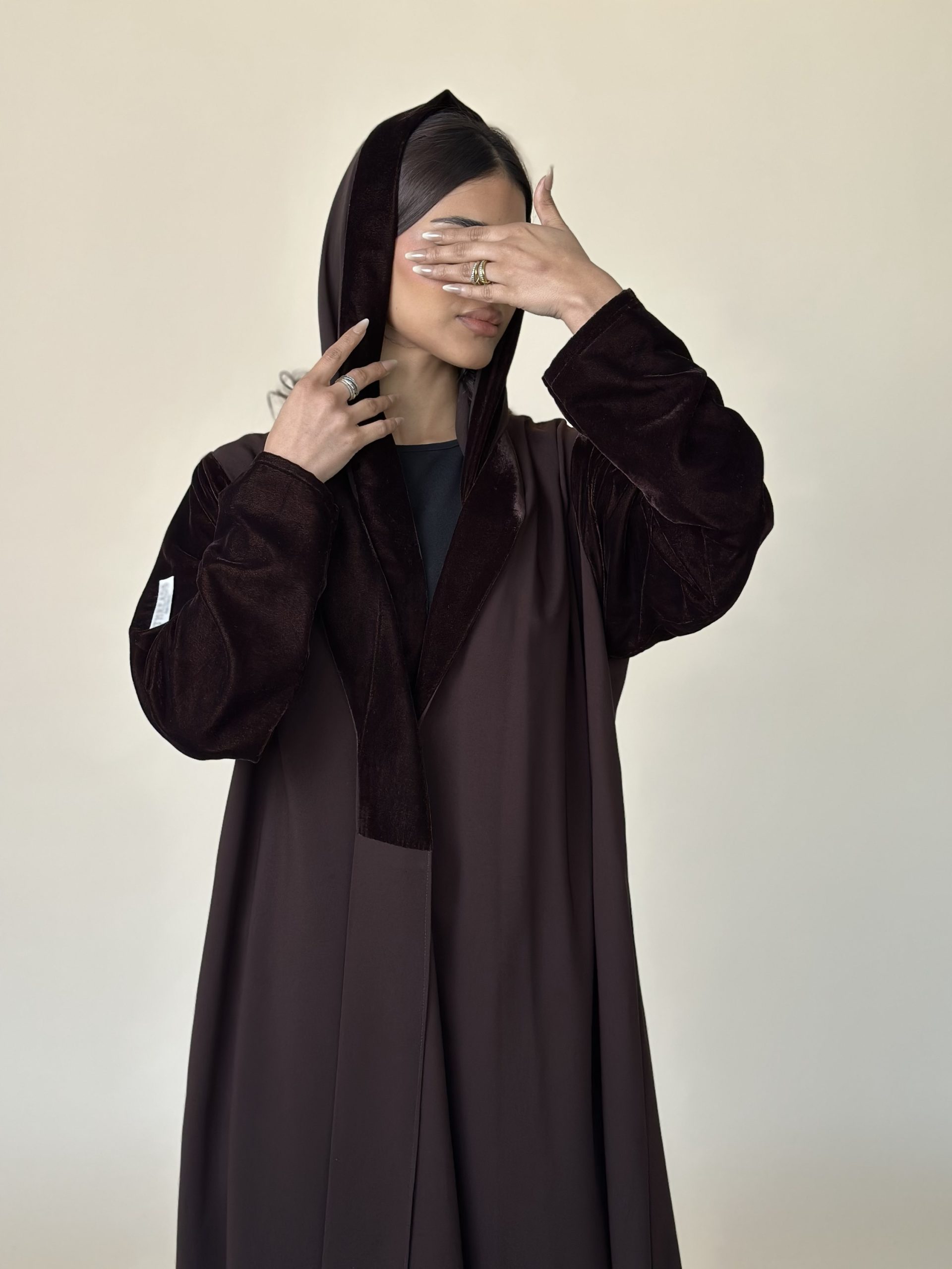 عباية بشت بدرجات البني قماش حرير عالي الجودة