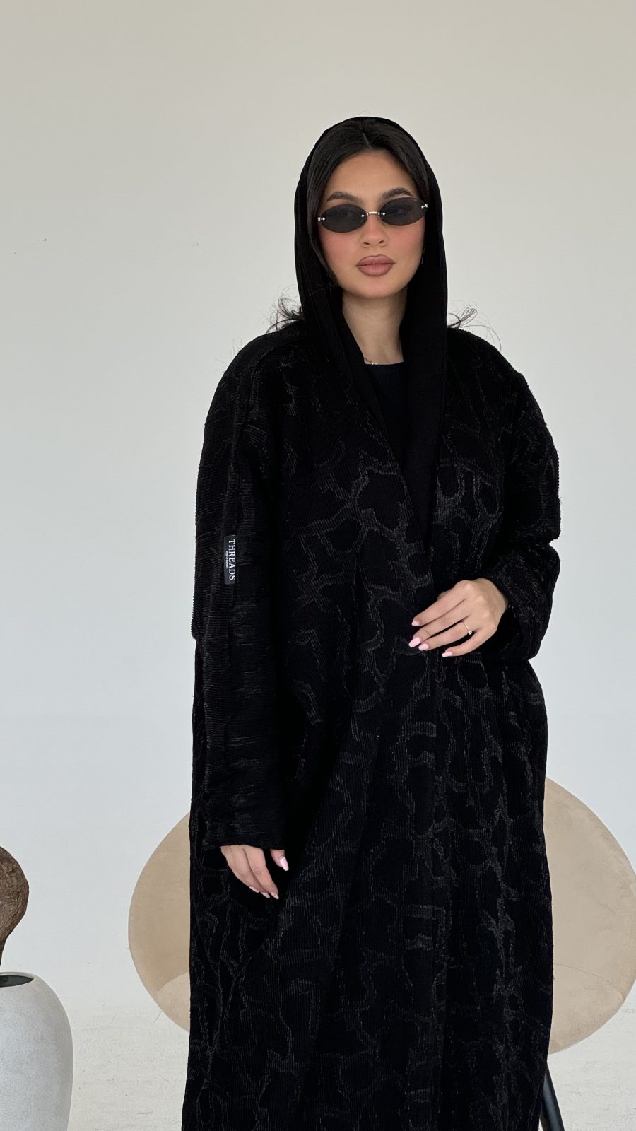 عباية مخمل لون اسود – مع شال بنفس قماش العباية